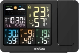 Vejrstationen har også et barometer, som kontinuerligt overvåger det atmosfæriske tryk og dets ændringer og viser vejrudsigten ved hjælp af piktogrammer. DCF-funktionen sikrer, at tiden altid er præcis takket være synkronisering med atomuret i Frankfurt.