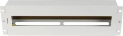 Det robuste metaldesign i grå er klar til montering i standard 19" racks og giver jordforbindelse for sikker drift. Panelet rummer op til 22 S-moduler med en bredde på 17,5 mm, hvilket dækker behovene i både mindre og større installationer.