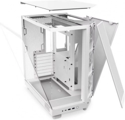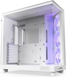 NZXT H6 Flow RGB løfter din pc-bygning til et højere niveau. Panoramiske glaspaneler med sømløs kant fremhæver dine komponenter, mens den kompakte tokammerslayout adskiller kabler og strøm fra hoveddelene for rent airflow og æstetik.