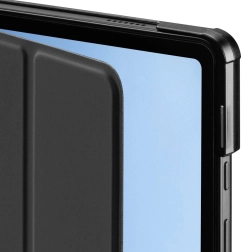 Præcist formede udskæringer giver fuld adgang til porte og knapper, mens det robuste materiale beskytter enheden fra alle sider. Det minimalistiske sorte design understreger tabletens moderne look og giver tryghed i daglig brug hjemme og på farten.
