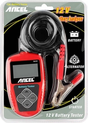ANCEL BA101 er en kompakt og pålidelig tester til omfattende diagnose af 12V/24V-systemer i området 8–30 V DC. Den evaluerer øjeblikkeligt startstrøm (CCA), indre modstand og ladetilstand og hjælper med at afgøre, om batteriet skal oplades eller udskiftes. Intuitiv betjening og en letlæselig skærm sikrer hurtigt arbejde uden kompleks opsætning.