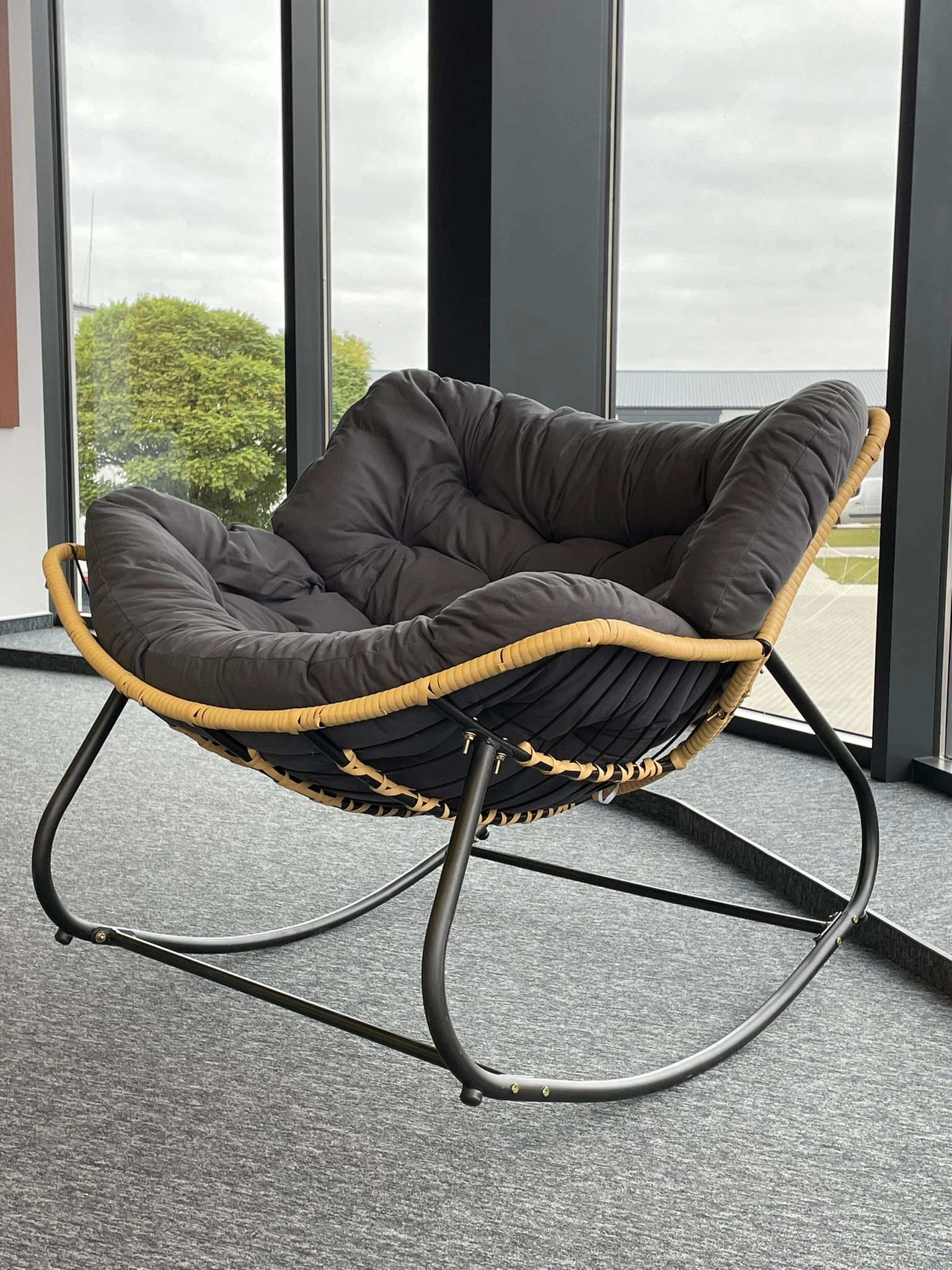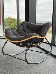Stilfuld hængestol fremstillet af højkvalitets rattan, ideel til interiører der kombinerer naturlige elementer med moderne design. Den bløde grå pude giver enestående komfort, mens den robuste konstruktion sikrer holdbarhed. Denne stol er et fremragende valg til stue, soveværelse, hotel eller kontor og fungerer også som en elegant accent i kommercielle miljøer.