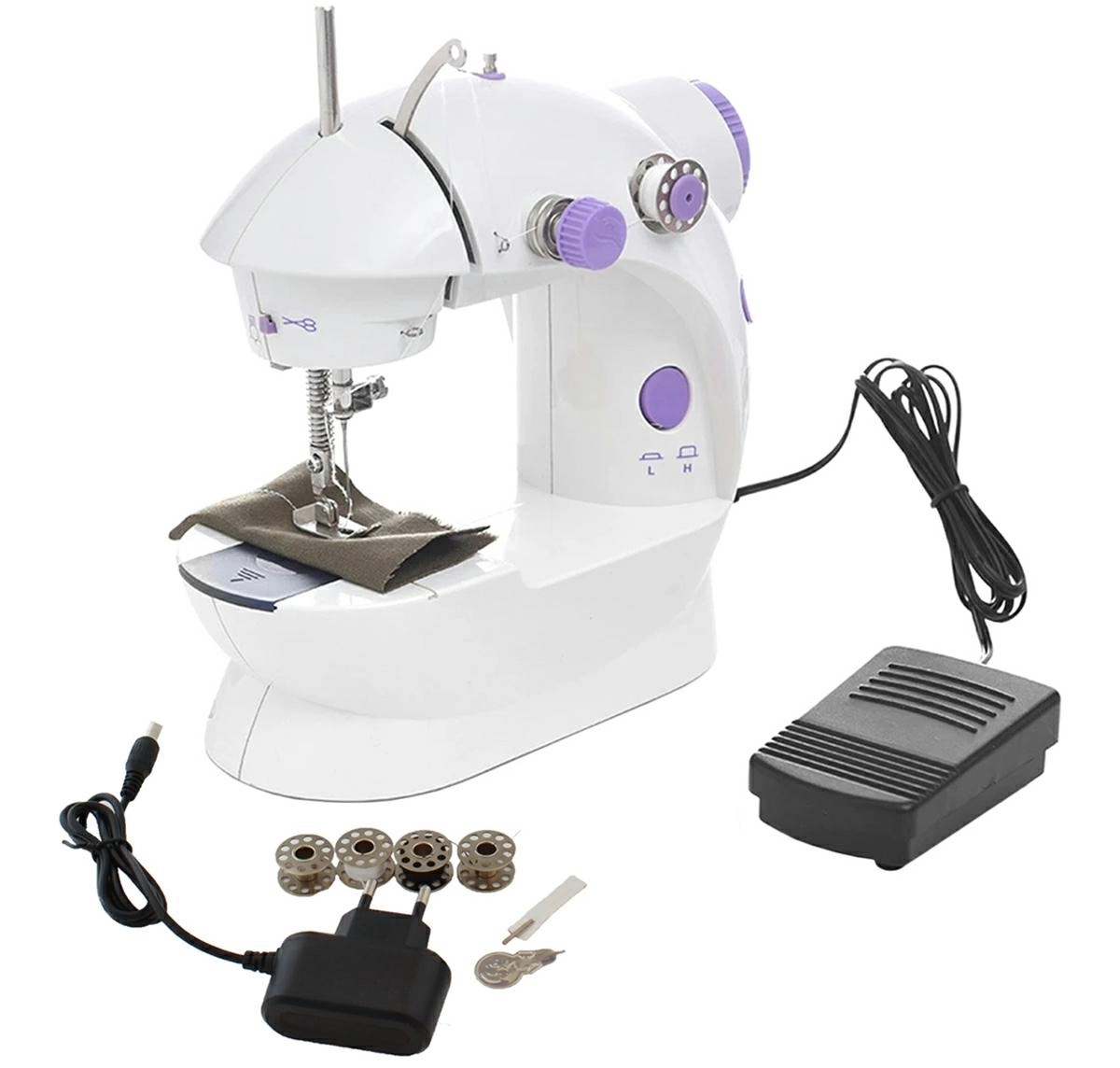 Den lette og kompakte mini-symaskine tilbyder nem betjening for både begyndere og øvede. Den har to syhastigheder og andre funktioner som en klassisk symaskine, herunder trådspænding og brug af forskellige spoler.
