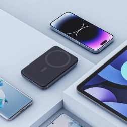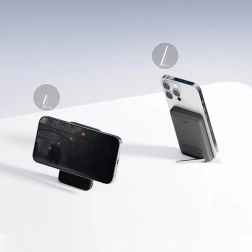 Takket være Pass-Through kan powerbanken fungere som en bordoplader – når den er tilsluttet strøm, oplades både den selv og enheden samtidig. Det kompakte kabinet med sammenklappeligt stativ gør det nemt at se videoer eller føre videoopkald håndfrit. LED‑indikatoren med fire dioder viser tydeligt opladningsniveauet.