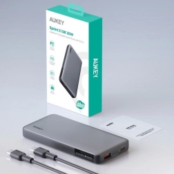 AUKEY Sprint X 10K er en tynd og let powerbank, der kombinerer høj effekt på 30 W med en praktisk kapacitet på 10.000 mAh. Med støtte til Power Delivery 3.0 og Quick Charge 3.0 oplader den pålideligt og hurtigt smartphones, tablets og mindre bærbare. Den overskuelige LED‑skærm viser den resterende energi i procent, så du altid har styr på opladningen.