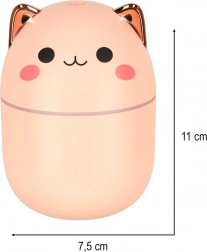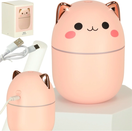 Stilfuld lyserød luftfugter i katteform kombinerer effektiv befugtning med et dekorativt udseende. Takket være beholderen på 250 ml arbejder den i flere timer uden at skulle efterfylde vand og hjælper med at reducere tør luft, irritation i luftvejene og tør hud.