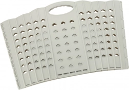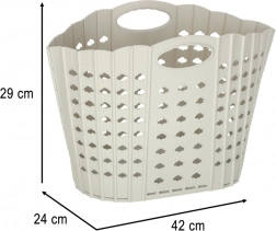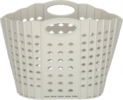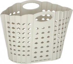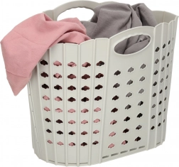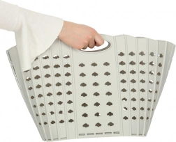 Praktisk sammenklappelig vasketøjskurv i grå, der sparer plads og gør organiseringen i hjemmet nemmere. Takket være de integrerede håndtag bæres den komfortabelt, det perforerede design sikrer ventilation, og den robuste plast tåler daglig brug. Sammenklappelig konstruktion, behageligt greb og rigelig kapacitet gør kurven til et ideelt valg til badeværelse, soveværelse og vaskerum.