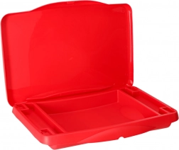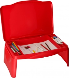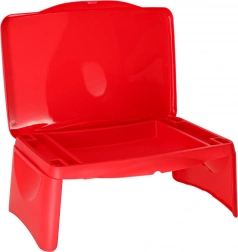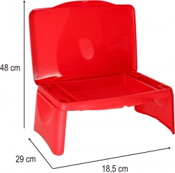 Bordet foldes hurtigt sammen til kompakte mål, er let at bære og nemt at rengøre. Det robuste plastdesign sikrer stabilitet og sikker brug både på skødet og på sædet.