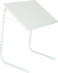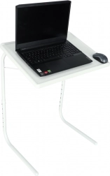 Nyd komfortabelt arbejde og underholdning i sofaen, lænestolen eller ved sengen. Det multifunktionelle hvide laptopbord kombinerer en stabil metalstruktur med en praktisk plastbordplade og kan let tilpasses i højde og vinkel til din position. Den hævede liste på pladens nederste kant beskytter din laptop mod at glide, selv ved større hældning.