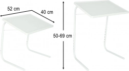 Bordet foldes sammen på få sekunder og kan opbevares under sengen, i skabet eller i et hjørne. Den rummelige arbejdsflade på 52 × 40 cm giver plads til laptop, bog og dokumenter, hvilket gør det ideelt til hjemmearbejde, læsning og servering.
