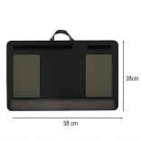 Den praktiske skødbakke forbedrer din komfort ved arbejde hjemme og på farten. De bløde puder på undersiden giver stabilitet og varmeafledning fra benene, mens den robuste topplade tilbyder en solid base til både laptop og mus. Den integrerede håndledsstøtte hjælper med at reducere træthed ved længere tids skrivning.