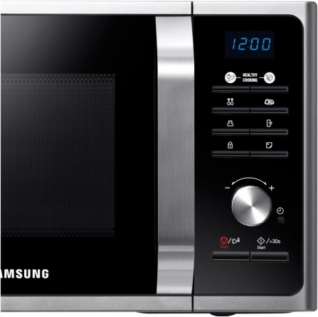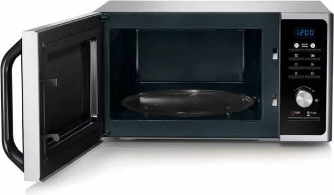 Med denne Samsung mikrobølgeovn kan du nyde sund madlavning og hurtig optøning, hvor hver ret bliver perfekt tilberedt. Det elegante sorte glas kombineret med metal-konstruktion og et intuitivt betjeningspanel med digital visning gør dette apparat til et både æstetisk og funktionelt supplement til dit køkken.
