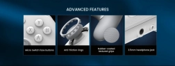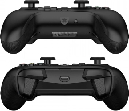 Teksturerede greb og en afbalanceret form giver komfort selv under lange sessioner. Bagsiden er designet til stabil håndtering og præcis kontrol.