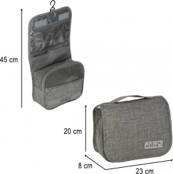 Grå rejsetoiletaske er den perfekte løsning til opbevaring af dine yndlings toiletartikler under rejsen. Med et rummeligt hovedrum og fire mindre lommer vil alt være overskueligt organiseret.