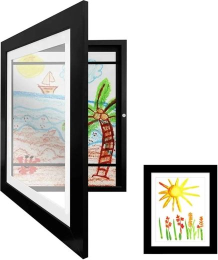 - Billeder, der ikke er udstillet, er sikret inde i rammen med elastiske bånd.