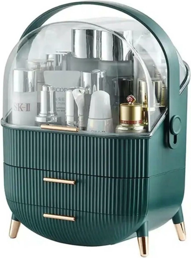 Praktisk og æstetisk organizer til opbevaring af kosmetik. Udstyret med et rummeligt hovedrum i gennemsigtig akryl og to ekstra skuffer til opbevaring af små genstande. Behageligt og meget praktisk håndtag for nem transport af kufferten.