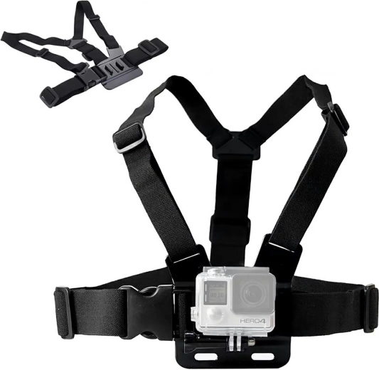Komfortabelt brystmonteret beslag til GoPro sportskamera. Brystbeslaget gør det muligt at montere kameraet på fronten. Ideelt til sportsaktiviteter samt ski og cykling. Det universelle design gør det muligt at fastgøre enhver kameramodel fra GoPro til DJI, SJCAM og andre producenter. Bløde og elastiske stropper sikrer komfort, når beslaget bæres under alle forhold. Sættet indeholder også en adapter og en monteringsskrue til fastgørelse af en smartphone.