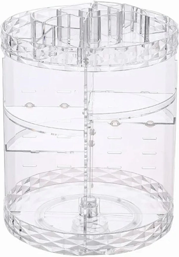 En usædvanligt praktisk roterende organizer til børster og kosmetik med fire tilsluttelige puder. Den gennemsigtige udførelse gør det muligt hele tiden at se indholdet af organiseren. Beholderen er ideel til opbevaring af kosmetikartikler i håndtasken eller på skrivebordet. Takket være sit universelle design passer den ind i enhver indretning.