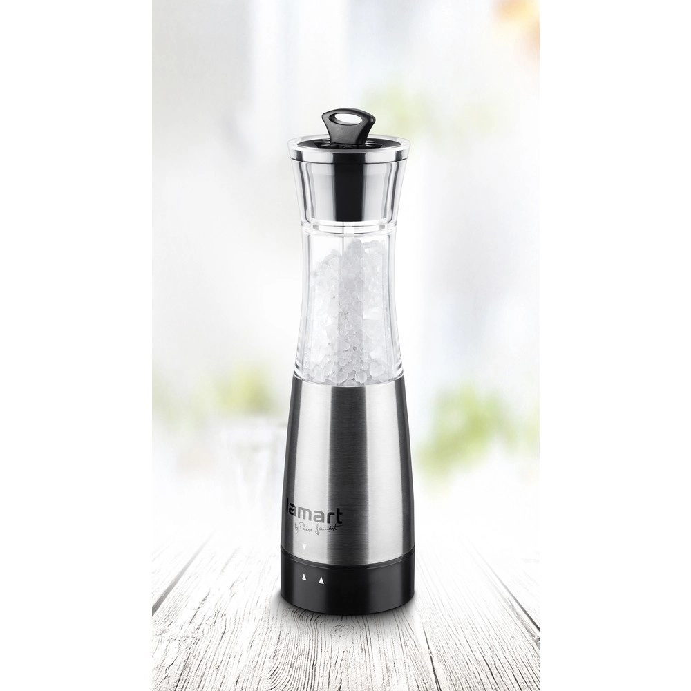 Denne elegante elektriske kværn er ideel til peber, salt og andre krydderier. Den holdbare keramiske kværn sikrer ensartet kværning og lang levetid, mens ergonomisk betjening med én knap gør den nem at bruge både under madlavning og ved servering.