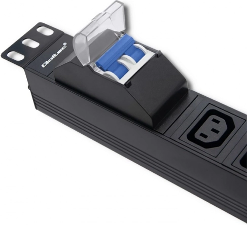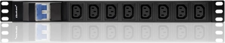 Skinnen har 8 udtag af typen IEC 320 C13 og en overspændingsafbryder for sikkerhed af tilsluttede enheder.