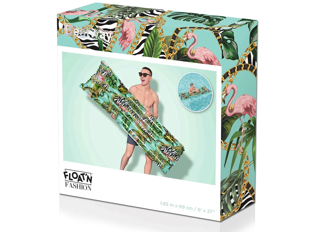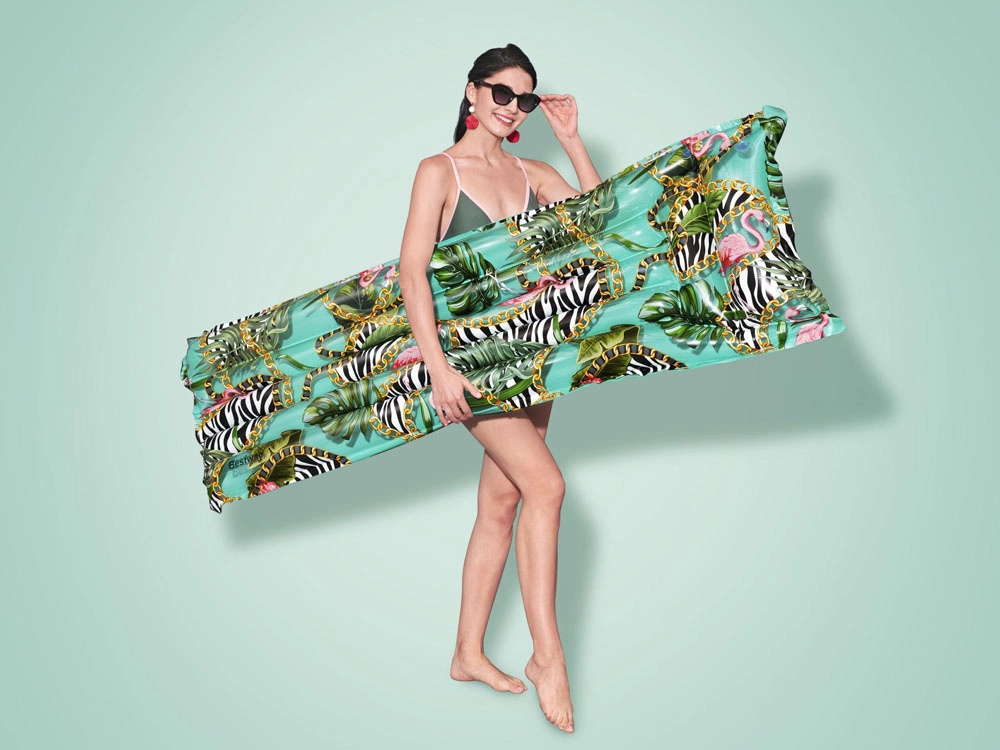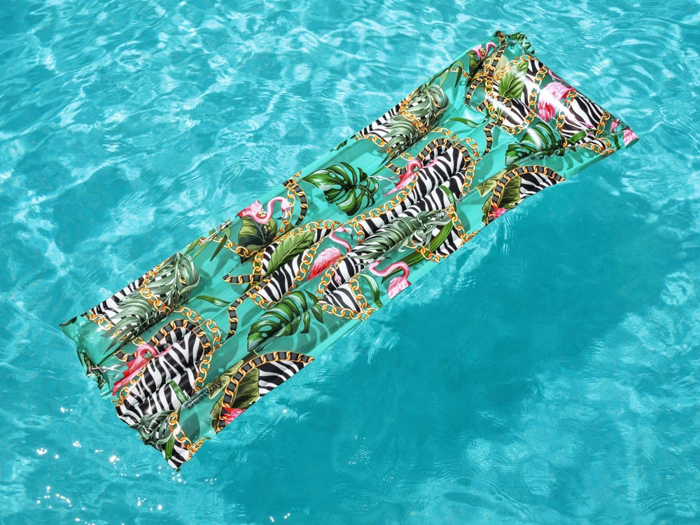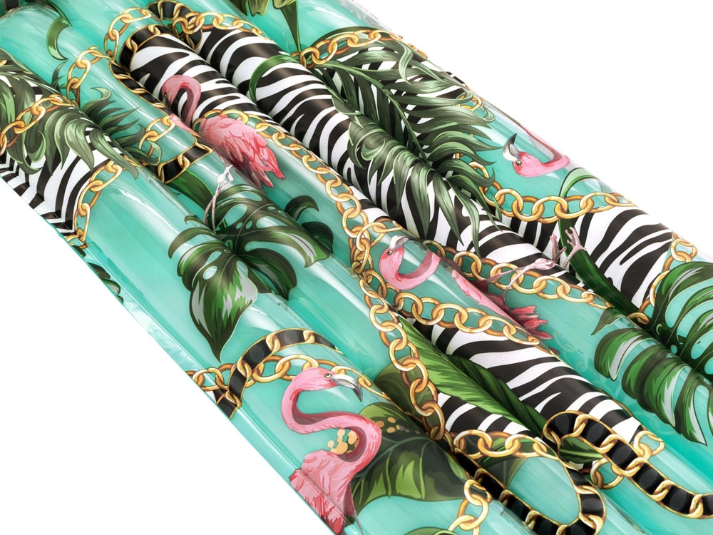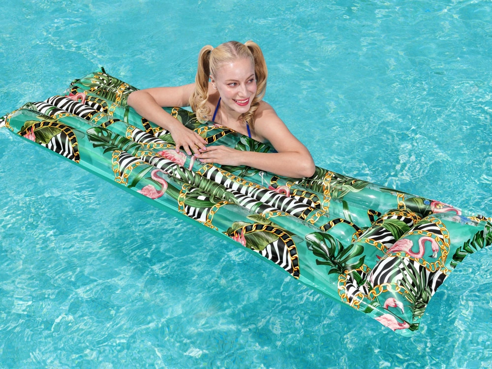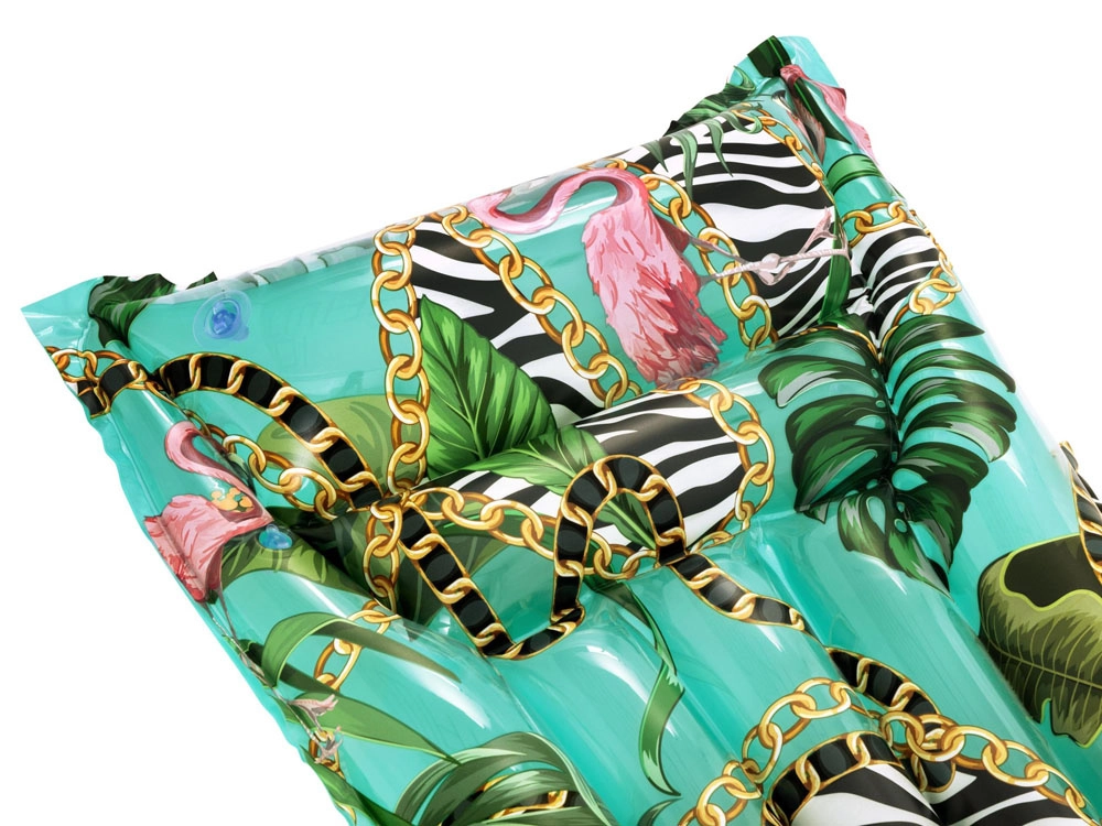 Denne stilfulde oppustelige madras med tropisk print er ideel til afslapning i din pool og på ferien. Takket være det stærke PVC-materiale og den gennemtænkte konstruktion med flere luftkamre tilbyder den fremragende opdrift, komfort og lang holdbarhed.