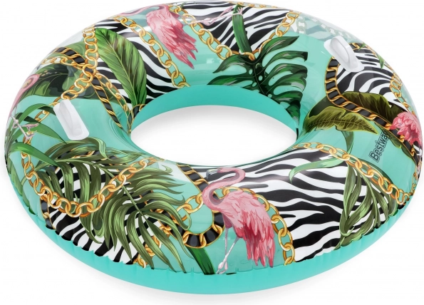 BESTWAY baderingen er et godt valg til afslapning på vandet og som hjælp ved svømmetræning. Størrelsen på 114 cm sikrer stabilitet og komfort, mens skridsikre håndtag gør det nemmere at komme i og manøvrere. Palmestykket giver dit sommerlook et frisk touch, og du bliver ikke overset på vandet.