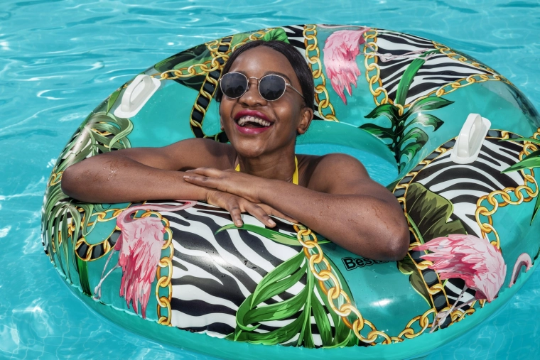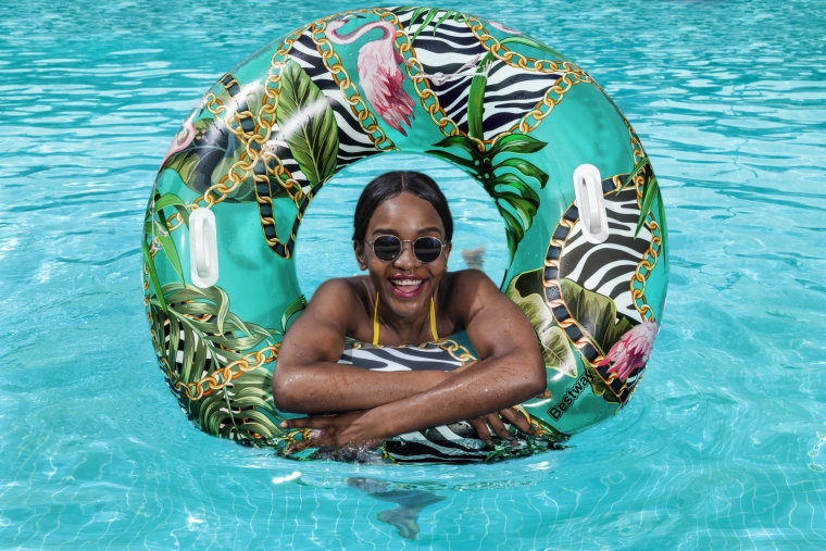 Nyd sommeren med en komfortabel badering fra BESTWAY med en diameter på 114 cm. Holdbart PVC-materiale, to solide håndtag for sikkert greb og et stilfuldt palmemønster vil glæde teenagere fra 12 år og voksne. Ideel til pool, sø og hav, let at blæse op og tømme, og der medfølger en reparationslap.
