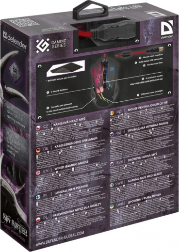Den stilfulde gamingmus DEFENDER Sin Sister GM-933 byder på en præcis optisk sensor op til 7200 DPI, 5 programmerbare knapper og en komfortabel ergonomisk form. Den tilbyder makroeditor i softwaren Defender Game Center, sideknapper til hurtige handlinger, en robust flettet kabel med forgyldt USB samt effektfuld bagbelysning for et imponerende look under spil.