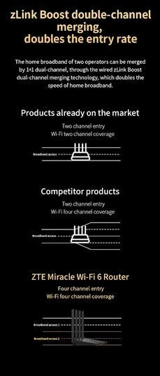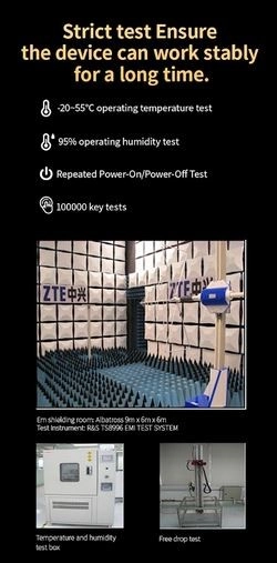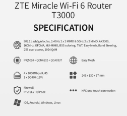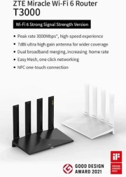 ZTE‑routeren er udstyret med fire eksterne 7 dBi‑antenner for bred signalrækkevidde selv i områder med forhindringer. Takket være understøttelsen af Wi‑Fi 6 (802.11ax) tilbyder den flydende streaming, gaming og arbejde på flere enheder samtidig.
