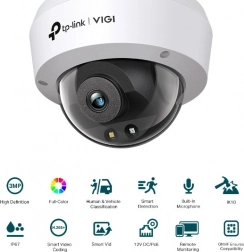 VIGI 4MP Dome Kamera tilbyder kompromisløs sikkerhed takket være avancerede funktioner som høj opløsning 3MP, vandalbeskyttelse og farver 24/7. Et fremragende valg til effektiv overvågning med fleksibel administration og nem installation.