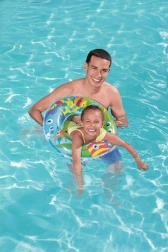 En oppustelig børnesvømmering fra Bestway med et muntert motiv af havdyr, ideel til børn i førskole- og indskolealderen. Fremstillet af holdbart PVC-materiale, egnet til gentagen oppustning og tømning. Ringen er perfekt til at lære at svømme og til leg i vandet og kan bruges ved havet, søen eller i poolen.