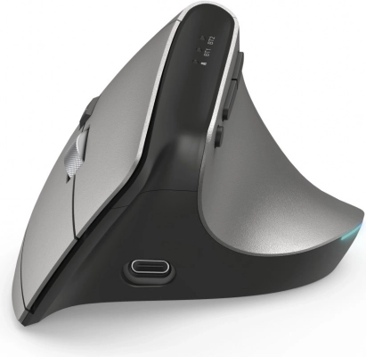 Arbejd mere komfortabelt og uden håndledssmerter med denne ergonomiske lodrette mus, som tilbyder skift mellem tre enheder (2× Bluetooth 4.2 + 2,4 GHz), opladning via USB-C med mulighed for brug under opladning, iøjnefaldende RGB-belysning, justerbar DPI og praktiske frem/tilbage-knapper til hurtig navigation.