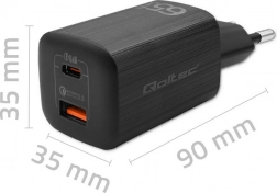 Opladeren muliggør samtidig opladning af to enheder via USB‑C PD og USB-A (QC 3.0). Med en vægt omkring 100 g og kompakte mål kan du nemt tage den med på arbejde og rejser – til telefon, smartwatch, laptop, trådløse høretelefoner og anden elektronik.