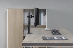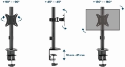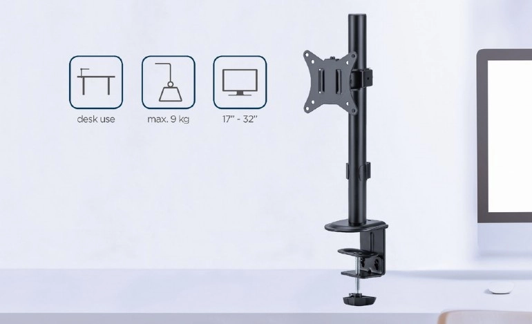 Denne monitorholder med en enkelt arm er det ideelle valg for alle, der søger en måde at optimere ergonomien på deres arbejdsområde. Den gør det nemt at justere højden, drejningen og hældningen af skærmen efter dine behov.