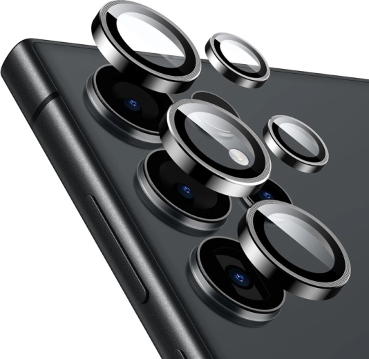 Lens Ring til Samsung Galaxy S24 Ultra er et sæt beskyttelsesglas til alle fem linser på telefonens bagside. Glassene er lavet af hærdet glas med en tykkelse på 0,33 mm og har CNC-aluminiumsringe, som giver ekstra beskyttelse ved fald. Takket være den specielle oleofobe belægning forbliver glassene rene og påvirker ikke billedkvaliteten. Limen på kanten efterlader ingen spor på objektivet.