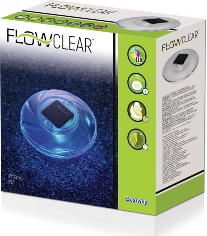 Skab en magisk stemning i din pool med BESTWAYs solcelledrevne, flydende LED-lys. Det giver op til 8 timers lys på én opladning, automatisk tænding ved skumring og er vandtæt. Takket være solcelledrift er det energibesparende og trådløst, med 7 lysfarver til stemningsfuld aftenbelysning af vand og have.