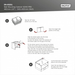 Levering i fladpakke sparer plads og tid. Galvaniserede 19" profiler med justerbar dybde samt vendbare dørhængsler gør installationen enklere.
