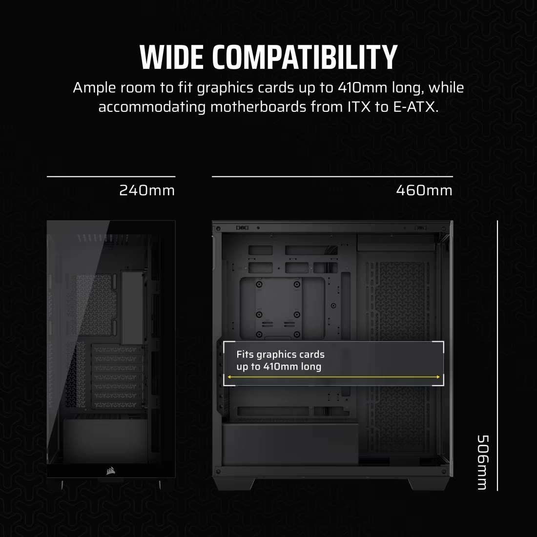 Byg en kraftfuld PC uden begrænsninger. 3500X-kabinettet er designet til at rumme de fleste store grafikkort, CPU-kølere og endda bundkort i EATX-format, uden at optage unødigt meget plads på skrivebordet.