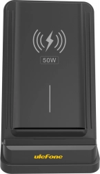 Ulefone 50W Wireless Charging Stand leverer ekstra hurtig trådløs opladning op til 50 W og komforten ved en stander, som holder telefonen perfekt vinklet til video, videoopkald og arbejde. Den dobbelt opladningsspole udvider det aktive område, så du nemt kan oplade i både vertikal og horisontal position.