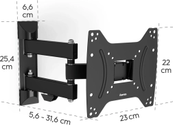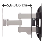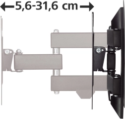 Kompatibel med VESA-standarder fra 75x75 til 200x200 mm, håndterer en tv-vægt på op til 20 kg. Maksimal og minimal afstand fra væggen er 31,6 cm og 5,6 cm, hvilket sikrer tilpasning efter individuelle præferencer. Den sorte farve i stålplade passer nemt ind i de fleste interiører.