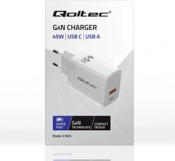 Qoltec 45W GaN oplader giver dig hurtig og effektiv opladning takket være GaN-teknologi, som sikrer lavere energiforbrug og højere sikkerhed.