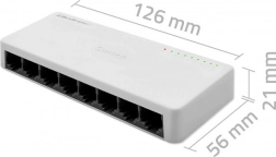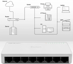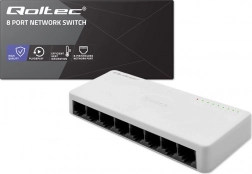 Få mere ud af dit netværk med den kompakte QOLTEC-switch. Otte RJ45-porte gør det muligt samtidig at forbinde op til syv slut-enheder og én uplink til router eller modem. Switchen understøtter hastigheder på 10/100 Mb/s (fast ethernet), arbejder i fuld- og halvduplex og sikrer jævn og pålidelig dataoverførsel takket være flowkontrol IEEE 802.3x.