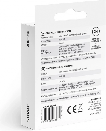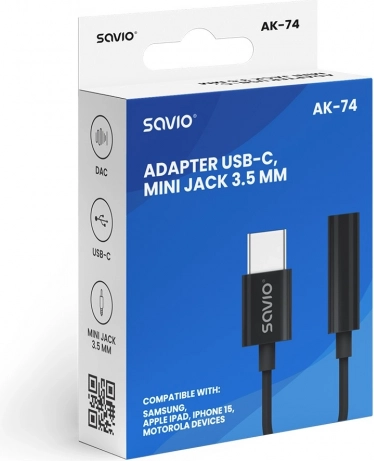 Savio lydadapter i et elegant sort design passer perfekt til enhver stil. Den er kompatibel med en bred vifte af enheder, inklusive smartphones og tablets fra anerkendte mærker som Samsung, Apple (iPad, iPhone 15 og 16) og Motorola. USB 3.1-standarden sikrer hurtig og stabil lydtransmission, hvilket giver problemfri afspilning af musik, podcasts og telefonsamtaler på dine yndlingshovedtelefoner.