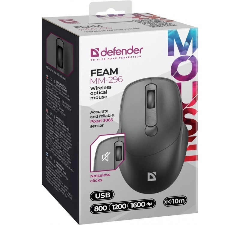 Den trådløse mus DEFENDER FEAM bringer komfort og ro til det daglige arbejde. Takket være silent click-knapperne forstyrrer den ikke omgivelserne, mens den ergonomiske form sikrer behagelig brug hele dagen. Præcis sporing på op til 1600 DPI passer til almindeligt kontorarbejde og web-browsing.