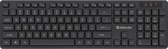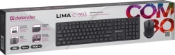 Det trådløse sæt DEFENDER LIMA C-993 forener komfort og enkelhed. Et fuldstørrelse tastatur med numerisk blok sikrer hurtig talindtastning, mens lavprofiltaster giver et stille og behageligt tastetryk. Den symmetriske mus ligger sikkert i både venstre og højre hånd, så den passer til alle brugere.