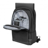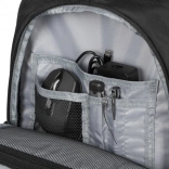 Hovedrummet rummer en 15,6" bærbar og en tablet; begge enheder beskyttes af blød polstring og fastgøres med velcrobånd, så de bliver på plads under transport.