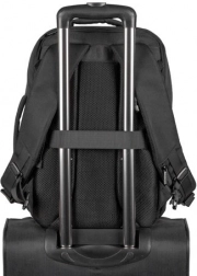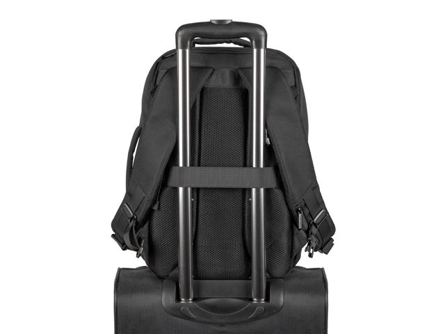 Ventileret ryg, justerbare stropper med brystrem og rem til fastgørelse på kuffertens teleskophåndtag.