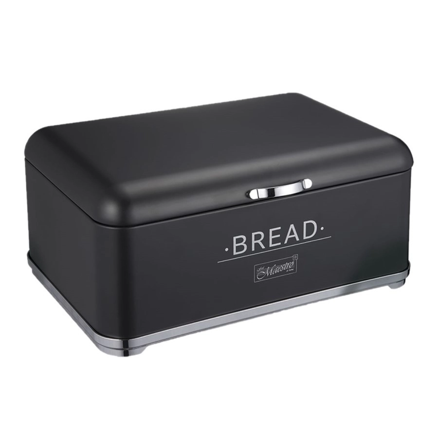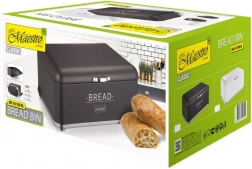Maestro brødkassen er lavet af kvalitets rustfrit stål, hvilket sikrer lang levetid og robusthed. Dens elegante sorte design med kromdetaljer giver køkkenet et moderne udtryk, og den ergonomiske udformning gør den nem at bruge. Brødkassen er designet til at beskytte bagværk mod udtørring og skimmel, hvilket forlænger holdbarheden.