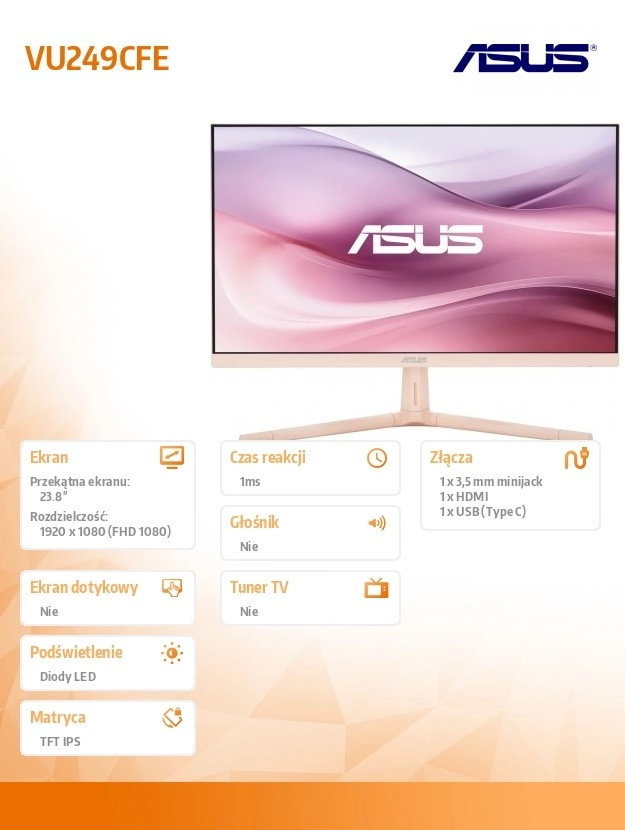 Nyd et jævnt billede og naturtro farver takket være IPS‑panelet og 100 Hz opdateringsfrekvens. Skærmen er ideel til arbejde, studier og underholdning – fra multitasking til hurtig websurfing og multimedie.