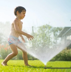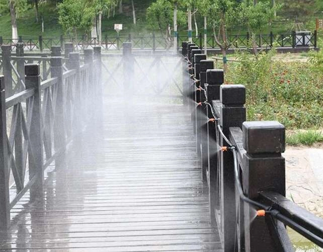 Fine dråber fra 11 dyser sænker omgivelsestemperaturen og øger komforten udendørs – ideelt til varme sommerdage.